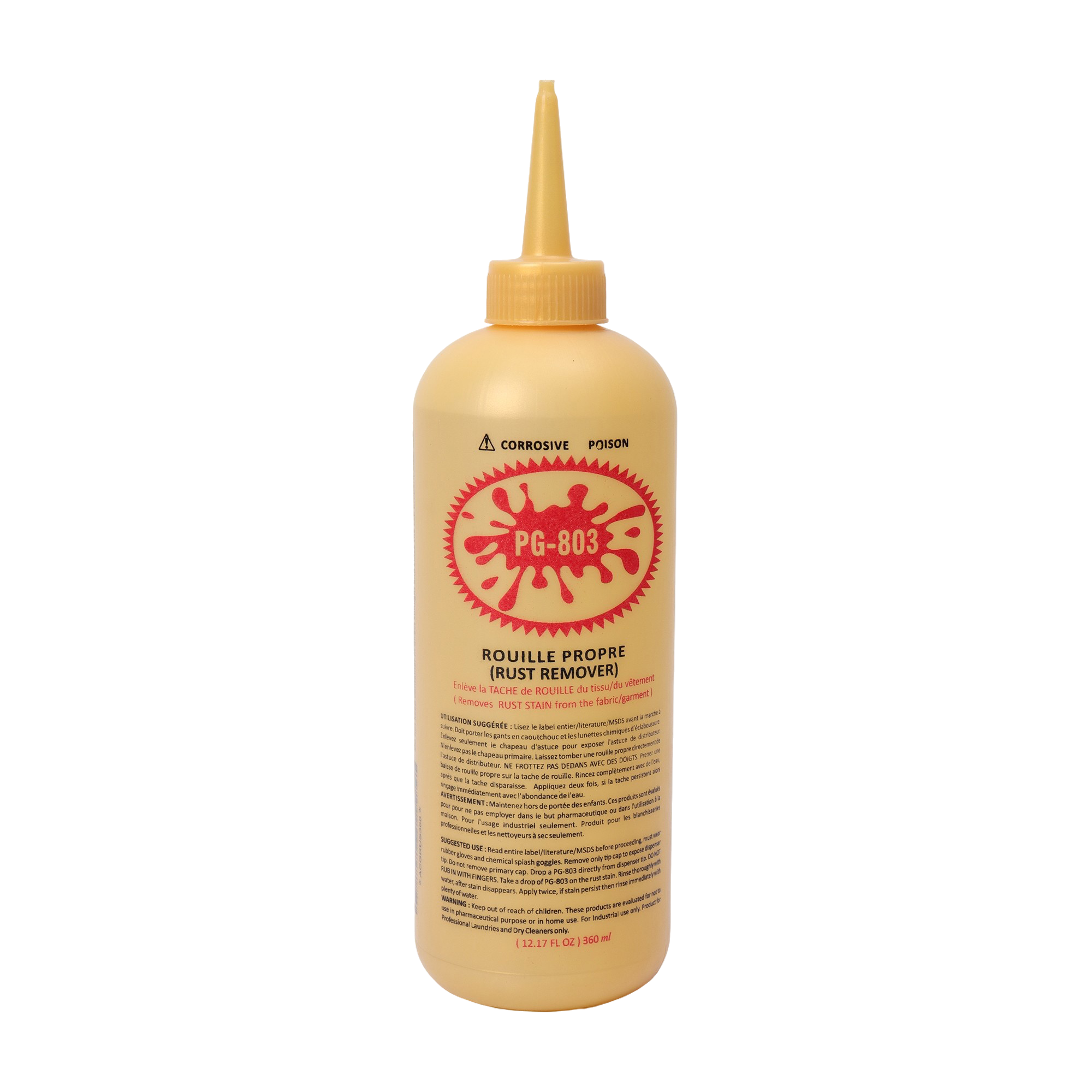 PG 803 is a“Rust stain remover”. It has properties to remove rust stain from the fabric or garment instantly. It can be applied to various type of fabric.